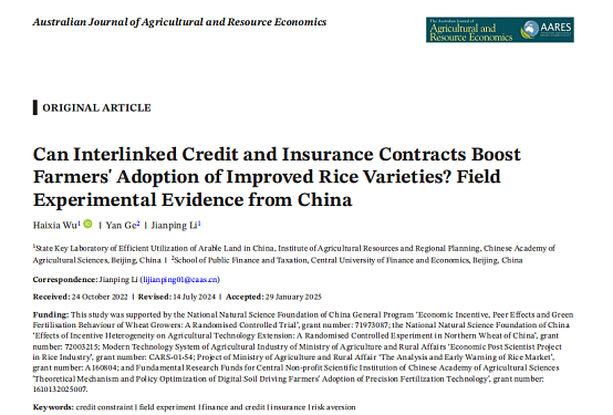 Chinese researchers uncover impacts of interlinked credit and insurance contracts on adoption of improved rice varieties