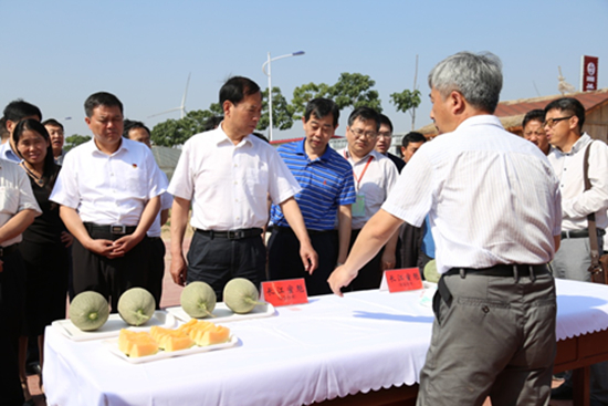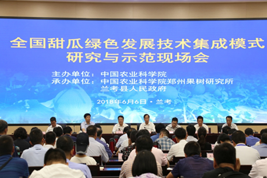6月6日,由中国农业科学院主办,郑州果树研究所和兰考县人民政府承办的“甜瓜绿色发展技术集成模式研究与示范工作”现场会在河南省兰考县举行。中国农科院党组书记陈萌山、副院长李金祥,农业农村部种植业司副司长杨礼胜,河南省农业厅副厅长陈金剑,河南省农业科学院党委书记魏蒙关,兰考县长李明俊等出席。会议由中国农科院副院长王汉中主持。