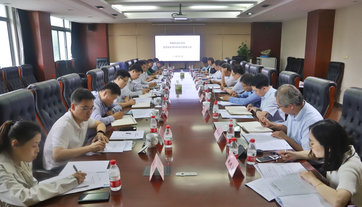 会议听取植保所、生物所、哈尔滨兽医所、上海兽医所关于生物安全科研创新情况与下一步计划的汇报,研讨了农业生物安全挑战、学科定义及创新工作方案。会议强调,院属相关单位要坚持习近平总书记在科学家座谈会上提出的“四个面向”重要指示精神,筑牢底线思维和前置思维,进一步完善农业生物安全创新体系建设,为保障国家生物安全作出应有贡献。