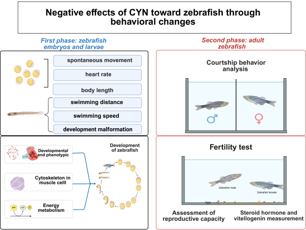 近日,中国农业科学院农业质量标准与检测技术研究所农产品质量安全风险评估创新团队构建了根据鱼类多种行为指标的风险评估方法,可提前预判由拟柱胞藻毒素引起的鱼类生殖毒性。相关研究成果发表在《有害材料杂志(Journal of Hazardous Materials)》上。