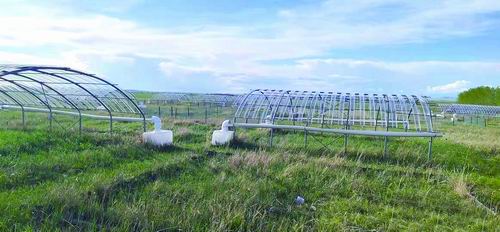 论文共同作者、北京林业大学草业与草原学院讲师柯玉广告诉《中国科学报》,干旱模拟设施就是一种特制的遮雨棚。其采用钢管支撑,顶部搭建弧形拱棚结构,上方覆盖透明的聚碳酸酯板,在允许阳光透过的同时,将降水偏导到实验区外,减少地表接收到的降水量,从而模拟干旱。