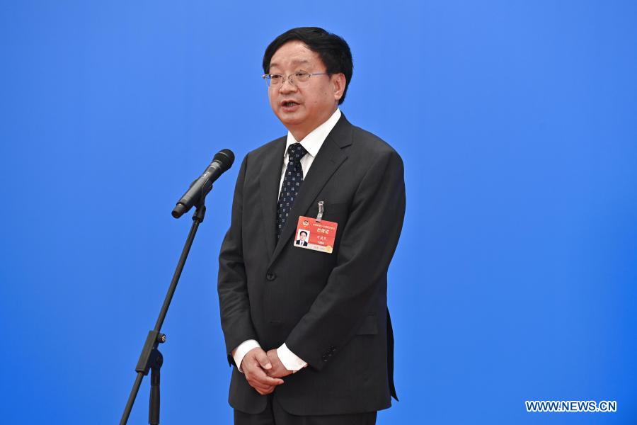 Wan Jianmin, a member of the 13th National Committee of the Chinese People's Political Consultative Conference (CPPCC), is interviewed via video link ahead of the opening of the fourth session of the 13th CPPCC National Committee at the Great Hall of the People in Beijing, capital of China, March 4, 2021. [Photo/Xinhua]