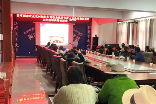 农业科技服务团充分认识技术培训、人才培养的重要性,充分发挥服务团成员专业水平较高、业务能力较强和科研素养好的优势,通过调研走访、定点帮扶、科技下乡等形式,深入西藏农牧业一线,针对马铃薯栽培技术、农作物栽培技术、饲草料加工技术、牦牛藏羊养殖技术、秸秆氨化技术、包虫病防治技术等进行业务指导与培训,先后组织开展技术培训85场次,培训农牧专业技术人员650余人次、农牧民群众4500余人次,帮助农牧技术推广部门解决蔬菜水肥管理、牛羊疫病防控、秸秆氨化、农畜产品检测等各类技术问题73个。山南组专家对9县(区)质检人员进行气相色谱仪实用技术培训,对配置检测实验室的4县(区)质检人员从快检设备的使用方法、操作规范等方面进行指导,有力促进了当地农产品质量安全检测技术队伍建设。林芝组专家协助举办“2020年藏猪职业技能提升培训”,针对当地乡镇养殖、兽防人员及科技特派员,开展非洲猪瘟疫情背景下藏猪疫病综合防控技术培训,为当地生猪稳产保供提供技术支撑。