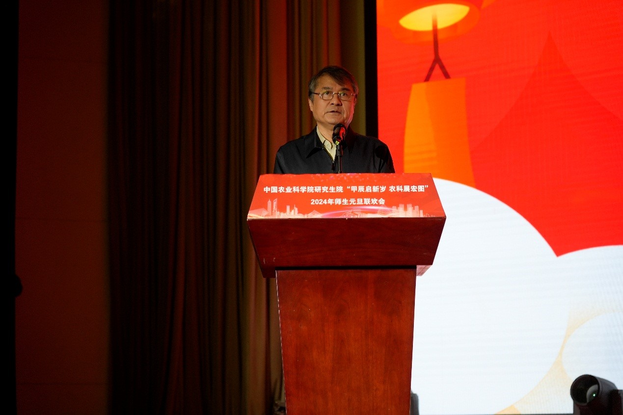 12月28日,“甲辰启新岁 农科展宏图”——中国农业科学院研究生院2024年师生元旦联欢会在京举行。农业农村部党组成员、中国农科院院长兼研究生院院长吴孔明,副院长叶玉江,院党组成员、人事局局长陈华宁出席联欢会。