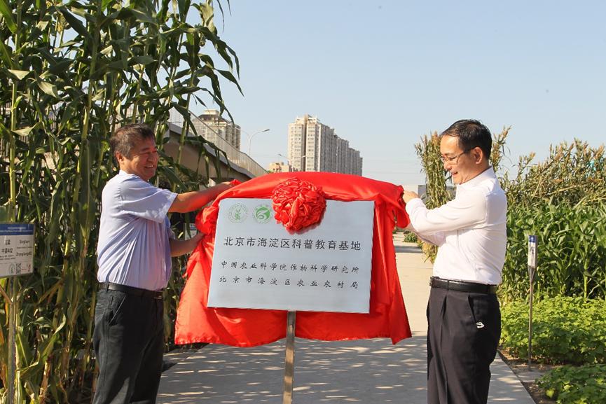 9月20日,中国农业科学院作物科学研究所作物科普基地“北京市海淀区科普教育基地”正式揭牌。院党组书记张合成出席活动,院党组副书记、副院长吴孔明和海淀区人民政府党组成员、副区长沙海江共同为科普教育基地揭牌。