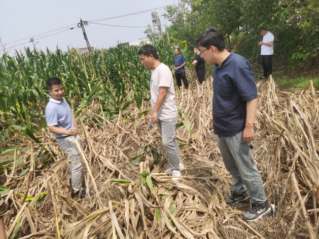 针对各地实际灾情,专家团成员在当地开展多种形式的田间课堂活动,解答农户提出的玉米灾情问题并进行针对性技术指导,并会同当地农业专家,提出玉米灾后恢复生产技术建议。一是过水地块及时中耕松土,加速水分蒸发,降低土壤湿度和紧实度,增加土壤氧气量,延缓根系衰老死亡。二是过水地块及时追肥促壮,以氮肥为主,结合叶面喷施水溶性磷肥加微量元素水溶肥。三是淹水植株倒伏地块尽早扶正。倒伏玉米茎叶重叠,造成田间郁闭,会引起病虫害蔓延而减产,应根据实际情况尽早扶起倒伏玉米。四是“一喷多促”抗逆防病促长。可用含有戊唑醇、三唑酮(粉锈宁)+氯虫苯甲酰+磷酸二氢钾+以及芸苔素内酯等生长调节剂,防治斑病、青枯病、锈病等病害,以及二代粘虫与玉米螟等虫害,促进植株恢复正常生长。五是绝收地块及时青贮或补种减损。玉米穗位叶及上部叶片已经发黄枯萎且全株叶片上没有淤泥的田块,建议及时抢收作青贮饲料,减少农户损失。