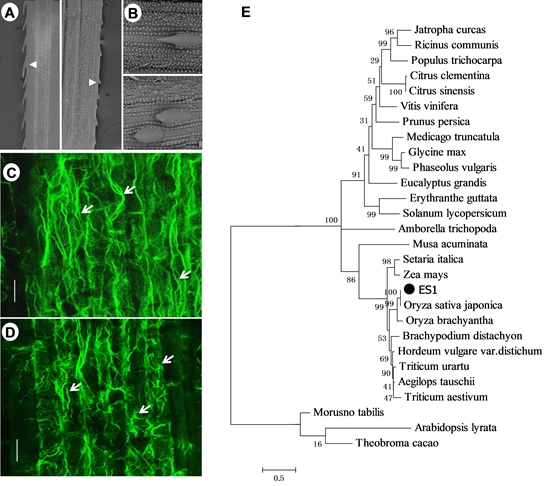 In this study, CAAS scientists isolated a rice (Oryza sativa.L) mutant, designated as early senescence 1 (es1-1), which exhibits early leaf senescence. The es1-1 leaves undergo water loss at the seedling stage (as reflected by whitening of the leaf margin and wilting) and display early senescence at the three-leaf stage. ES1 was cloned using map-based strategy, which encodes a SCAR-like protein 2, a component of the SCAR/WAVE complex involved in actin polymerization and function. Moreover, es1-1 mutants exhibited significantly higher stomatal density.