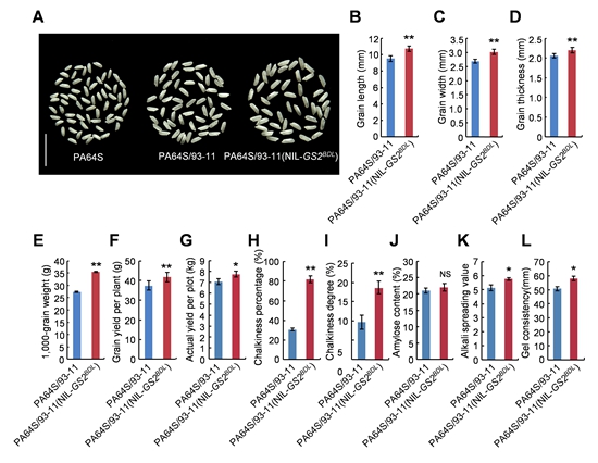 Figure 2. Comparing traits between PA64S/9311 and PA64S/93-11(NIL-GS2BDL)