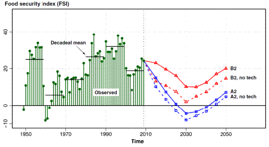 The research concluded that 1) the proposed food security index is a simple yet powerful tool for food security analysis; (2) yield growth rate is a much better indicator of food security than yield per se; and (3) climate change only has a moderate positive effect on food security as compared to other factors such as cropland area, population growth, socio-economic pathway and technology development. Relevant policy options and research topics are suggested accordingly. The more detailed information can be downloaded from the international Journal- Agronomy for Sustainable Development with open access at Springerlink.com.