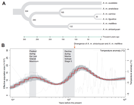 The western honey bee (Apis mellifera) is an interesting species to study climate-driven adaptation because it originated in tropical/subtropical climatic regions and subsequently spread into temperate regions. However, little is known about the genetic basis of its adaptation to temperate climate. The study reports the first discovery of Apis mellifera population in China, extending the eastern boundary of the distribution of Apis mellifera into western China. Employing a population genomic approach, researchers designated the population as a new subspecies of honey bee (Apis mellifera sinisxinyuan), and found that long-term global temperature has strongly influenced its demographic history and divergence from other subspecies. The study also identified a series of genes related to fat body and the Hippo signaling pathway that are potentially involved in adaptation to temperate climates. These findings will facilitate the selective breeding of A. mellifera to improve the survival of overwintering colonies.