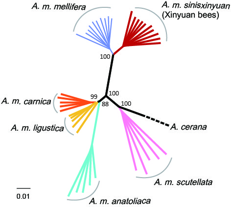 Fig. 1 Phylogenetic tree of honey bee populations.