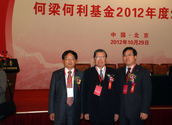 The Ho Leung Ho Lee Foundation Awarding Ceremony 2012 was held at the Diaoyutai State Guesthouse on October 29th in Beijing. Three research fellows from the Chinese Academy of Agricultural Science (CAAS) received the awards. Professor WANG Lian-zheng, CAAS former President and Professor WAN Jian-min from the Institute of Crop Sciences (ICS) were conferred the Prize of Scientific and Technological Progress, while Professor LI Fu-guang from the Institute of Cotton Research (ICR) was conferred the Prize of Scientific and Technological Innovation.