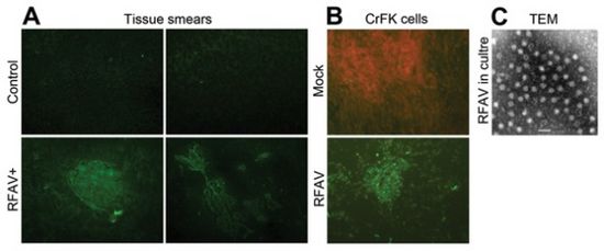 Researchers discovered a new amdoparvovirus, named raccoon dog and fox amdoparvovirus (RFAV) from farmed raccoon dogs(Nyctereutes procyonoides) and arctic foxes(Vulpes lagopus) in China. Phylogenetic analyses showed that RFAV belongs to a new viral species within the genus Amdoparvovirus of the family Parvoviridae, which is distinct from Aleutian mink disease virus. Furthermore, Dr. Shao isolated a RFAV strain from a sick animal in Crandell feline kidney cell culture. The evidences of the detection, identification, and isolation of RFAV confirmed that raccoon dogs are naturally susceptible to RFAV infection, and RFAV is most likely the etiologic agent of the sick raccoon dogs causing Aleutian mink disease-like symptoms. The findings update the knowledge to the genus Amdopavovirus. The isolated RFAV strain XQ-JLR is rare material, which facilitates comparative studies of genetic function and immunology between amdoparvovirus species. Additionally, three testing methods were provided to detect RFAV infection. The study was published on Emerging Infectious Diseases Journal, correspondence authors: Professor Fuhe Yang, Dr. Xiqun Shao. http://dx.doi.org/10.3201/eid2012.140289 .
