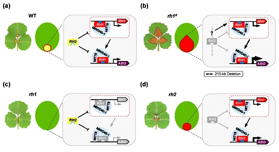 The Antagonistic MYB Paralogs RH1 and RH2 Govern Anthocyanin Leaf Markings in Medicago Truncatula
