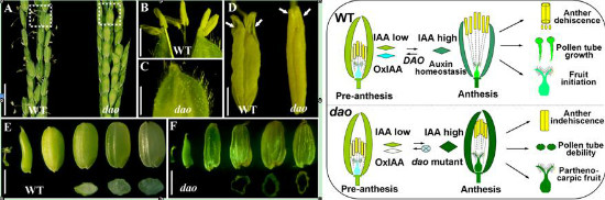 Recently, a research team led by Wan Jianmin of Institute of Crop Science of Chinese Academy of Agricultural Sciences (ICS-CAAS) found a key role of a dioxygenase in auxin metabolism and reproductive development in Rice.