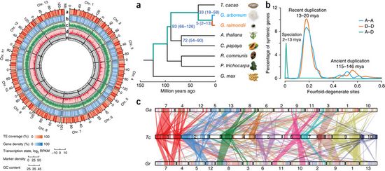 Nevertheless, molecular phylogenetic analyses suggested a divergence time for G. arboreum and G. raimondii of about 5 (2-13) million years ago. There after two whole-genome duplications were shared by G. arboreum and G. raimondii before speciation. However, insertions of long terminal repeat in the past 5 million years which are responsible for the twofold difference in the sizes of these genomes. The finding results of the study will not only facilitate the understanding of the complexity of cotton genome but also genetic diversity of cotton genus.
