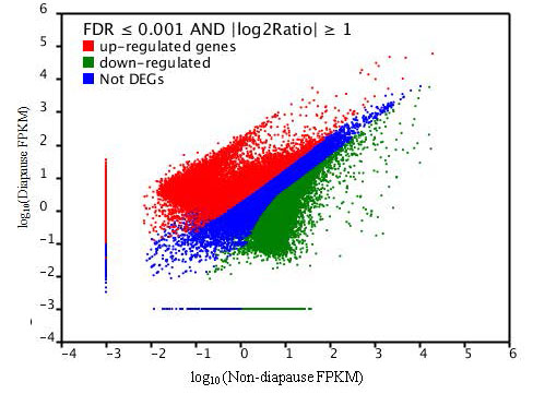 Insect diapause can be divided into obligative diapause and facultative diapause. Many research papers have reported the molecular biology characteristics of the obligative diapause insects, but there was no report about the facultative diapause insects. In this paper, they studied migratory locust, a representative facultative diapause insect, and found 3 pathways including (i) starch and sucrose metabolism (KEGG: Map00500), (ii) glycolysis and gluconeogenesis (KEGG: Map00010), (iii) glycerolipid metabolism (KEGG: Map00561) played an important role in diapause. Maltase-glucoamylase, glycogen debranching enzyme, aldose-1-epimerase, hexokinase, glucokinase, ADP-dependent glucokinase, phosphoglucomutase were up-regulated. These up-regulated enzymes enabled diapause eggs to synthesize cryoprotectants (trehalose and glycerinum) and to store energy for diapause and post-diapause stages, also it provides an important clue that insulin-like may involve in locust diapause regulation. This paper is the first report of diapause regulation for the hemimetabolous insect, and has been selected as one of F1000Prime candidate papers.