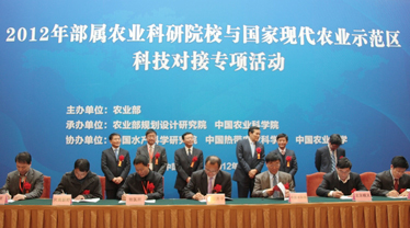 On November 6th, 2012, CAAS signed 41 S&T cooperative agreements with 38 China’s National Modern Agricultural Demonstration Zones on an agricultural S&T achievements promotion sponsored by the MOA. -