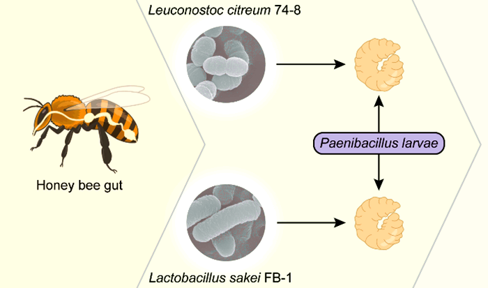 Two probiotic strains isolated from the honeybee gut exhibited inhibitory effects against Paenibacillus larvae