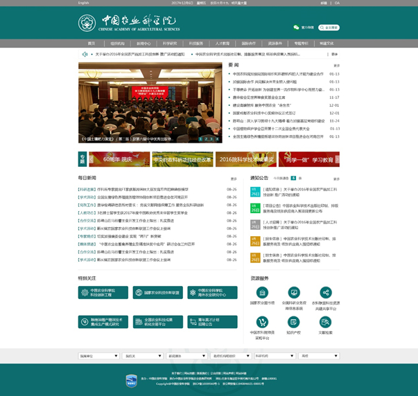 根据农业部网站整合总体部署,为保持与农业部新版门户网站整体风格的一致性,中国农业科学院信息化工作领导小组办公室会同院网络中心,对中国农科院中文门户网站首页及个别板块进行了重新设计与调整,将于近日上线试运行。