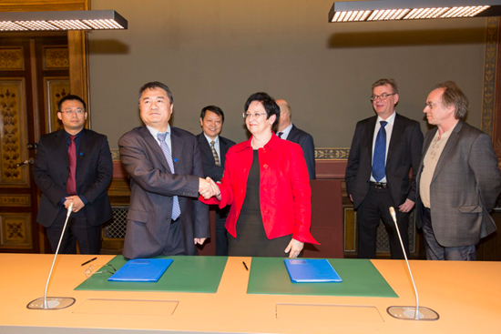吴孔明副院长与芬兰自然资源研究所主任在中芬两国科技部部领导见证下签协议