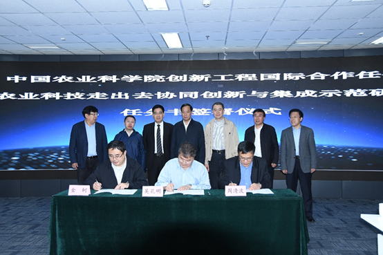 中国农业科学院科技创新工程国际合作任务“农业科技走出去协同创新与集成示范研究”任务书签署仪式同期举行,承担任务的牵头单位领导和技术总师签署了任务书。