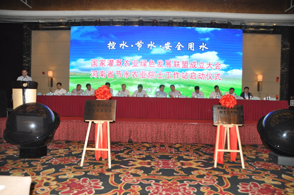 5月19日,国家灌溉农业绿色发展联盟成立大会暨河南省节水农业院士工作站启动仪式在河南新乡市举行。农业部科教司副司长冯志勇,河南省科技厅副厅长夏培臣,新乡市人民政府常务副市长李跃勇、副市长职伟,中国农业科学院党组成员、副院长、国家农业科技创新联盟秘书长梅旭荣,院党组成员、人事局局长贾广东,农田灌溉研究所所长黄修桥等领导出席会议并讲话,西北农林科技大学校长吴普特教授,中国工程院罗锡文院士、康绍忠院士、陈学庚院士、赵春江院士等专家参加会议。会议由中国农科院灌溉所党委书记陆建中主持。