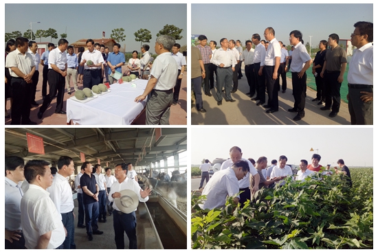 河南省农业厅副厅长陈金剑、河南省农科院党委书记魏蒙关,中共兰考县委书记蔡松涛、县长李明俊,以及中国农科院科技管理局、基本建设局、成果转化局、北京畜牧兽医研究所、生物技术研究所、郑州果树研究所、灌溉研究所等单位的负责人以及有关工作人员参加调研。