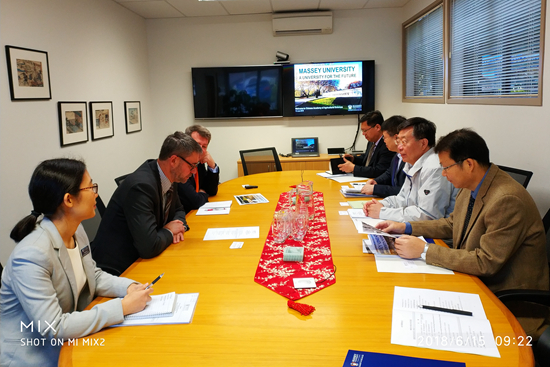 在新西兰期间,代表团与梅西大学副校长司塔特·莫瑞斯等举行了深入会谈,双方就加强食品安全、动物疫病防治、果树研究等领域的合作研究,以及推动双方研究生交换和博士生联合培养项目开展务实合作达成共识。代表团还与新西兰皇家植物与食品研究所首席科学家理查德·纽康博博士等进行了深入会谈,双方一致同意加深在果树植病防护、食品加工与保藏领域的合作,并着重探讨了在食品感官评价、消费者认知等研究纵深方向上的合作事宜。