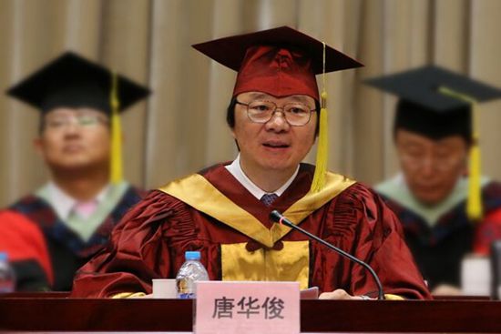 在欢快祥和的乐曲声中,唐华俊带领部分学位委员会委员和博士生导师代表一起为毕业生颁发学位证书,并为参加典礼的毕业生一一正冠扶苏。会后,与会的各位领导、嘉宾和导师与全体毕业生亲切合影留念。
