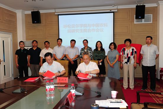 刘大群和侯岩共同签署了《中国农业科学院研究生院与呼伦贝尔学院合作协议》,并出席中国农科院研究生培养实践基地揭牌仪式。