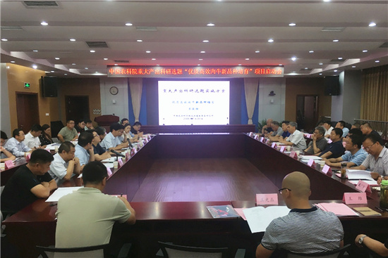 7月20日,中国农业科学院2018年首批支持的8个重大产出科研选题之一“优质高效肉牛新品种培育”项目启动会暨肉用西门塔尔牛育种联合会成立大会在北京畜牧兽医研究所举行。农业农村部、全国畜牧总站、院科技管理局、牧医所等领导及20家肉牛联合育种科研单位与企业共计40余人参加会议。会议由牧医所副所长张军民主持。