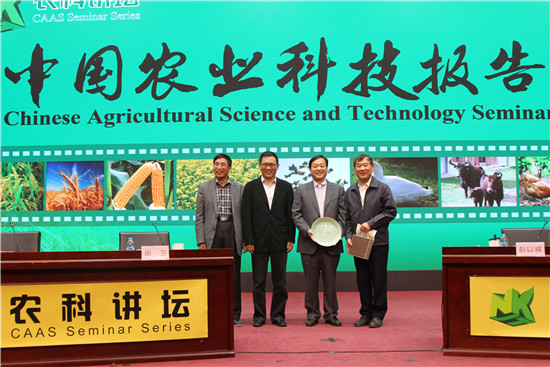 报告结束后,科技部基础研究司巡视员彭以祺、中国农科院资源所金继运研究员作为点评嘉宾与现场科研人员及学生代表进行了互动交流。中国农科院党组书记张合成为主讲人和点评嘉宾颁奖。报告会由副院长梅旭荣主持。