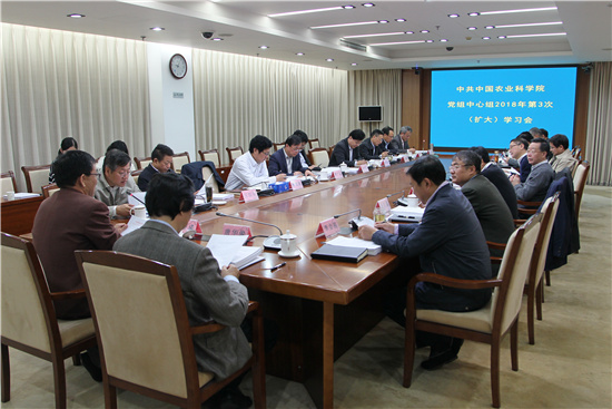 11月30日,中国农业科学院举行党组中心组2018年第3次(扩大)学习会,深入学习习近平总书记关于实施乡村振兴战略和脱贫攻坚的一系列重要论述,进一步提高认识、理清思路、把握重点,研究部署贯彻落实的工作举措,推进乡村振兴科技支撑行动落地,发挥好农业科技在乡村振兴与脱贫攻坚中的支撑引领作用。农业农村部党组成员、中国农科院院长唐华俊出席会议并讲话。会议由院党组书记张合成主持。