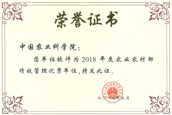 中国农科院被评为2018年度农业农村部绩效管理优秀单位