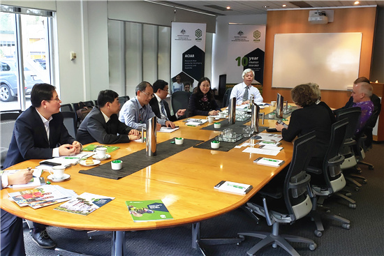在澳大利亚期间,代表团访问了澳大利亚联邦科学与工业研究组织(CSIRO)、澳大利亚国际农业研究中心(ACIAR)。在CSIRO,代表团与副院长珍·泰勒等进行了合作研究进展讨论,就进一步推进中国农科院农业科技创新工程与其重点项目合作进行了深入交流,双方一致同意继续推进在脂质利用、可持续发展方面的合作研究,并拓展至小麦、兽医科学、园艺科学和人工智能装备等领域。在ACIAR,代表团与首席执行官德鲁·坎贝尔进行了座谈,双方一致同意在已有的良好合作基础上,通过南南合作等渠道,进一步开展务实高效合作,共同促进世界特别是发展中国家的农业科技进步。