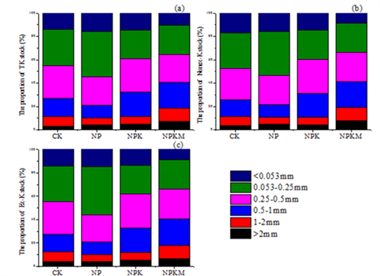 红壤旱地是中国南方丘陵区主要的耕地资源,然而,受土壤自身性质和人为不合理开发等因素的影响,南方丘陵区的红壤旱地普遍存在钾素匮缺的突出问题,严重限制了作物产量潜力的发挥。而作为衡量土壤养分存储和供应能力的重要指标,团聚体各组分的养分分配显著影响作物的养分吸收。然而,关于钾素在土壤团聚体各组分中,尤其是不同施肥措施下的分配规律尚不明确。