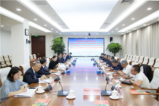 7月16日,中国农业科学院党组书记张合成会见乌兹别克斯坦农场经营者和附属土地所有者理事会主席哈伊托夫·阿克塔木·阿赫马多维奇及乌兹别克斯坦农业部副部长哈德扎耶夫·萨伊卡马尔·萨伊德卡里莫维奇一行。双方就共同感兴趣的农业科技合作领域相关问题展开深入交流。副院长吴孔明出席座谈会。