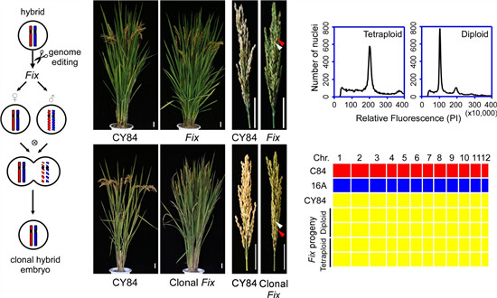 2.建立杂交水稻无融合生殖体系。水稻研究所王克剑研究团队联合中国科学院遗传与发育生物学研究所首次建立了可固定杂种优势的水稻无融合生殖体系,成功获得杂交水稻的克隆种子,实现了杂交水稻无融合生殖从0到1的关键突破,该成果以封面故事发表在国际主流学术期刊《自然·生物技术(Nature Biotechnology)》。