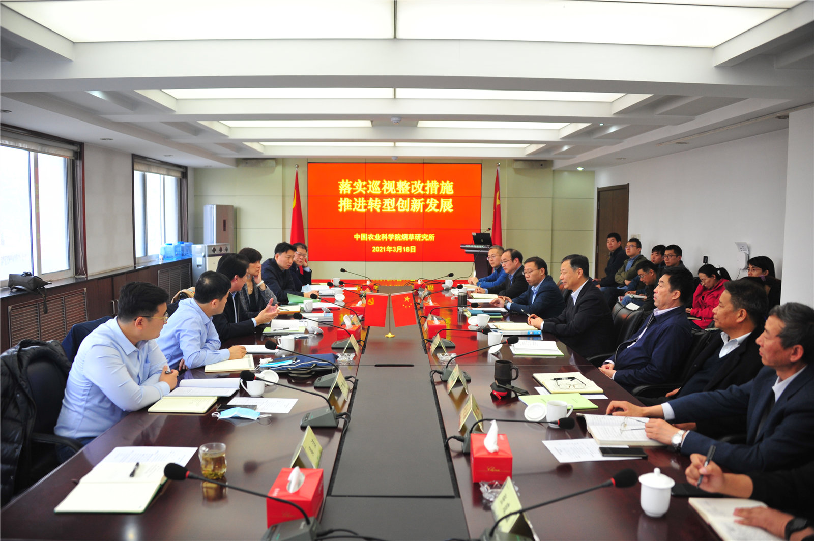 刘现武详细了解了烟草所巡视整改落实、“十四五”发展思路、创新团队建设等情况,考察了烟草所实验室和科研条件建设情况,并与烟草所领导班子成员、中层干部、创新团队首席、支部书记、青年人才座谈交流,深入了解烟草所改革发展过程中面临的问题与现实需求。