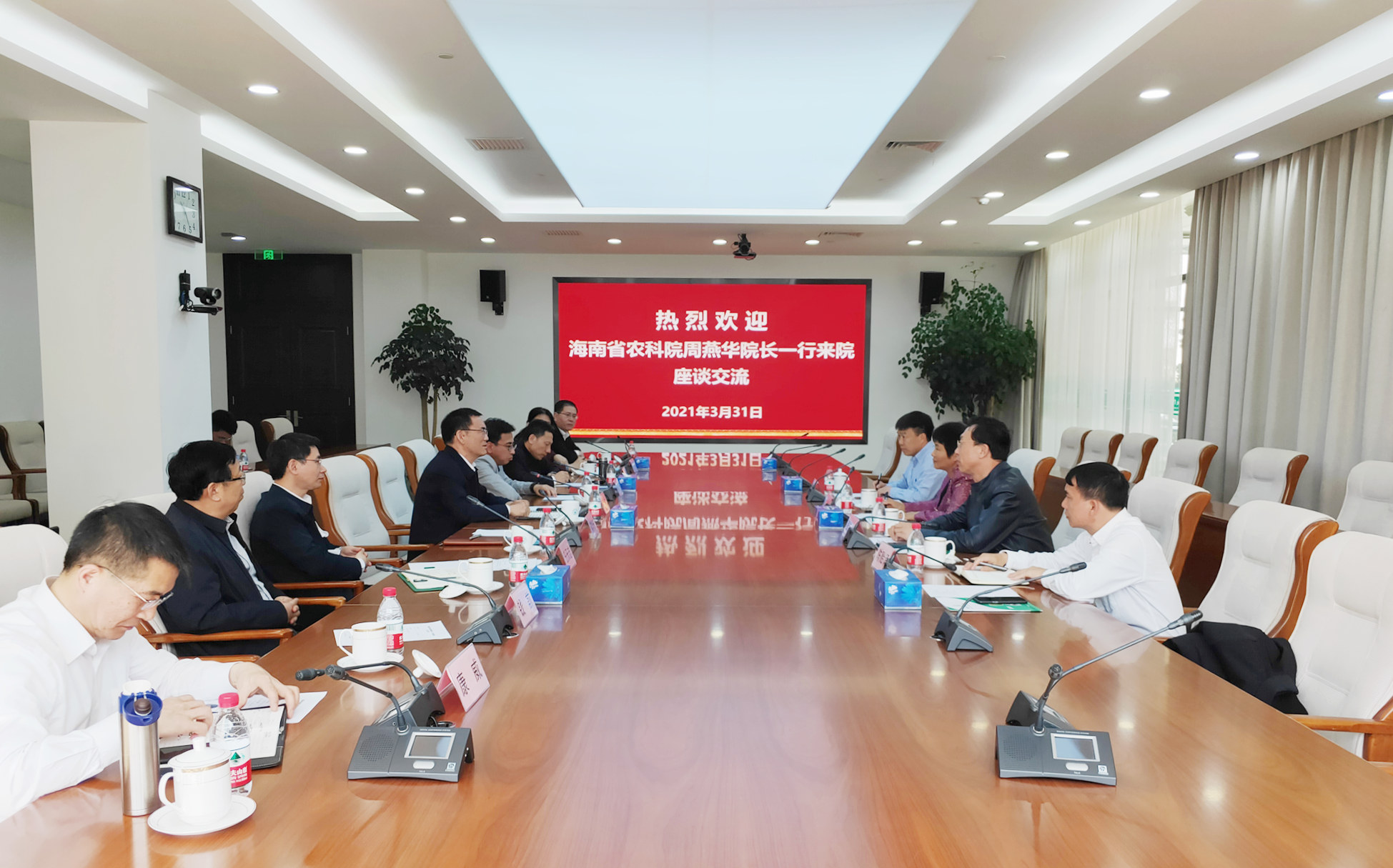 3月31日,中国农业科学院党组书记张合成会见海南省农业科学院党委书记、院长周燕华一行,双方就共建“南繁硅谷”,深化两院战略合作进行座谈交流。副院长孙坦主持会议。院党组成员、人事局局长陈华宁出席会议。