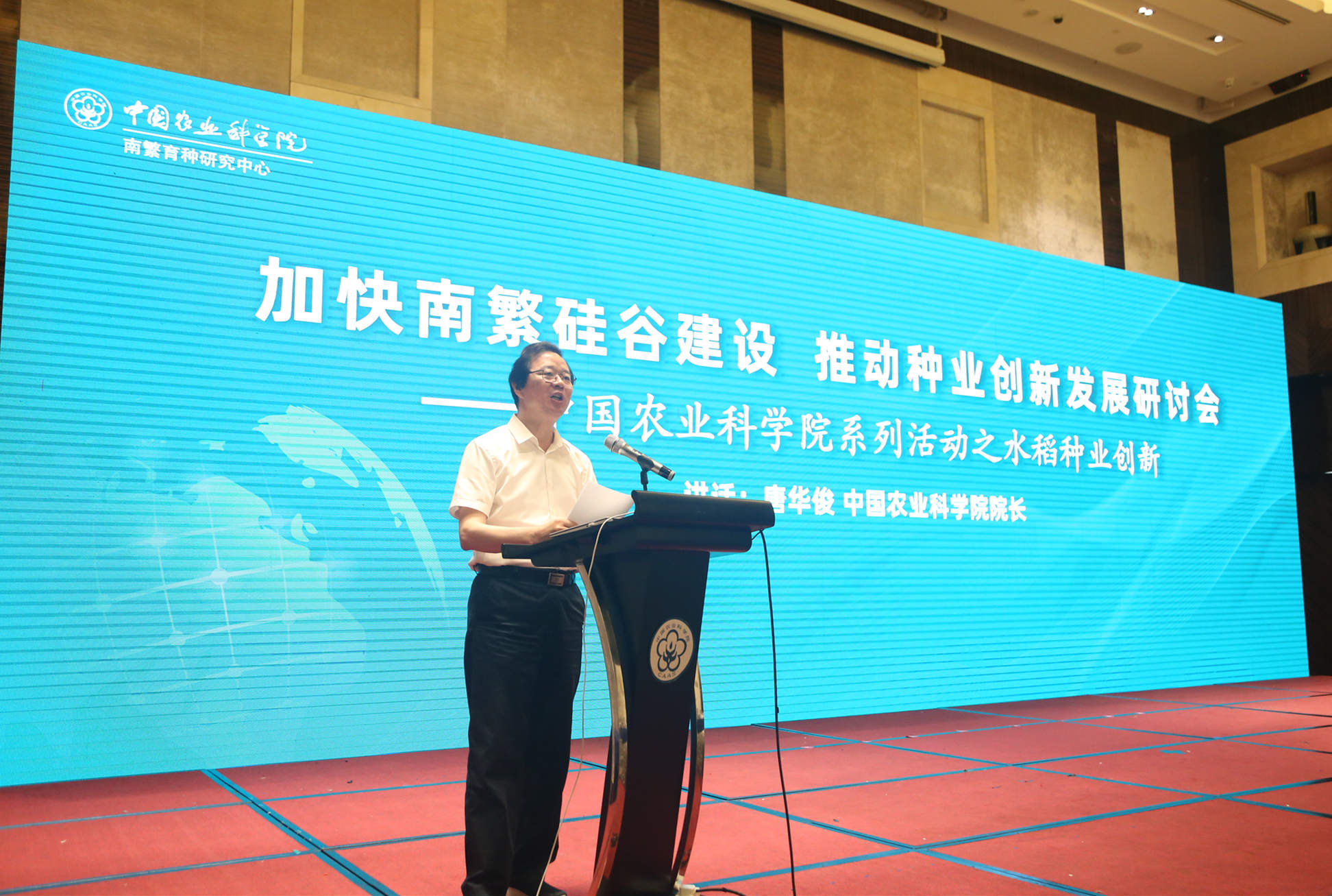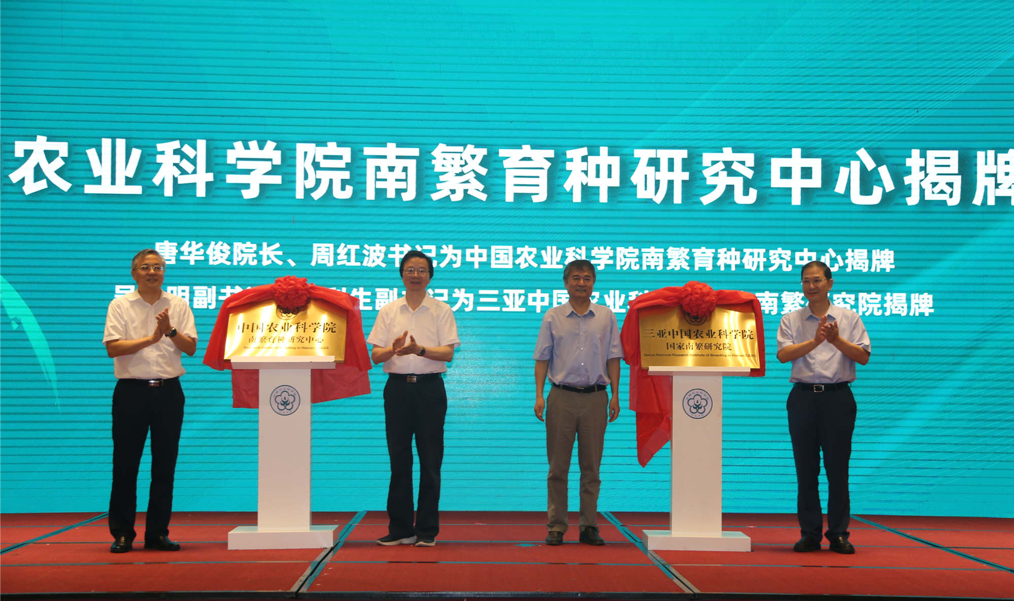 5月19日,中国农业科学院南繁育种研究中心揭牌仪式暨加快南繁硅谷建设推动种业创新发展研讨会在三亚举行。农业农村部党组成员、中国农科院院长唐华俊出席会议并讲话,海南省委常委、三亚市委书记周红波出席揭牌仪式。