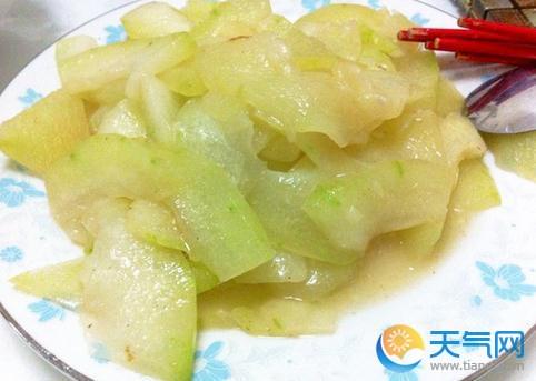 冬瓜性味甘淡寒,入肺、胃、大肠、小肠,利尿消肿、清热消渴。蕴含维他命B1及纤维,有助大肠蠕动,排清废物和毒素。冬瓜是天然利尿消肿剂,对糖尿病人有良好的消肿作用。冬瓜利尿消水肿的功能主要在于瓜皮中,故需连皮熬煮。