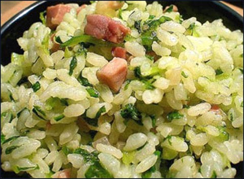 到了小寒,老南京一般会煮菜饭吃,菜饭的内容并不相同,有用矮脚黄青菜与咸肉片、香肠片或是板鸭丁,再剁上一些生姜粒与糯米一起煮的,十分香鲜可口。其中矮脚黄、香肠、板鸭都是南京的著名特产,可谓是真正的"南京菜饭",甚至可与腊八粥相媲美。