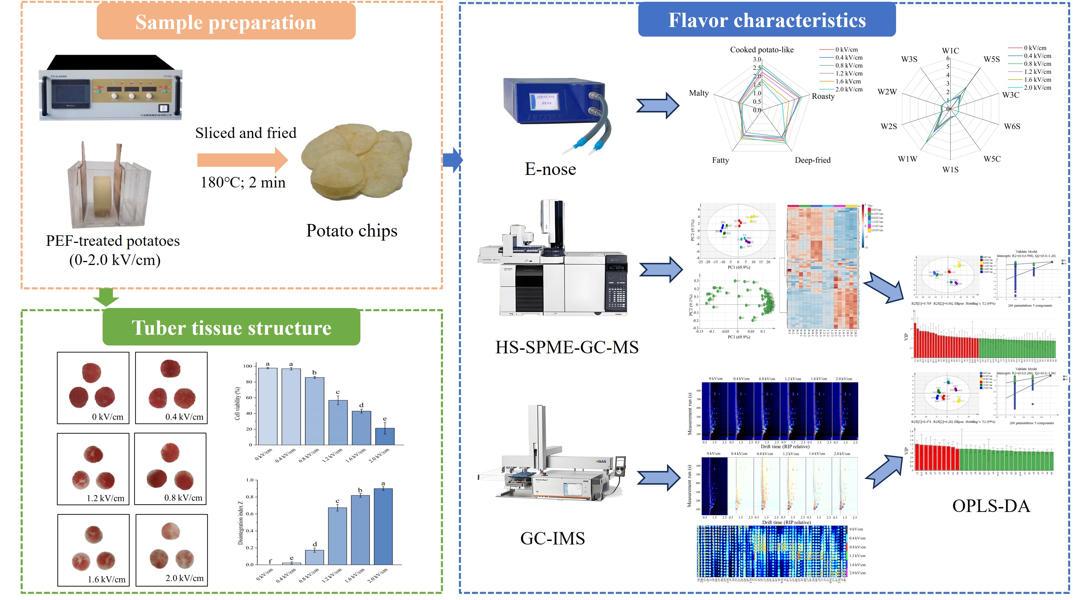 马铃薯是重要的粮食蔬菜兼用作物,既可作为主食,也是健康休闲食品的重要原料。脉冲电场作为一种新兴物理加工技术,已在马铃薯食品预处理中得到广泛应用。然而,其对风味形成的影响和调控机制仍缺乏系统研究。