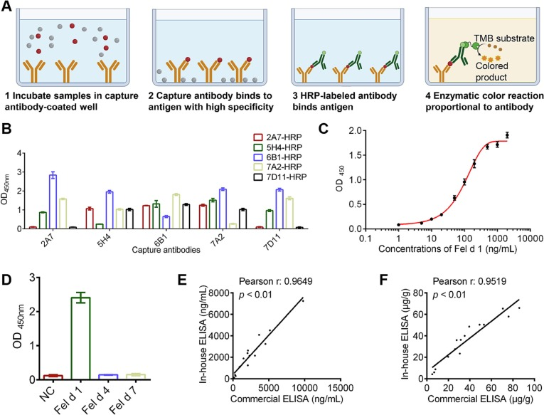 该研究通过构建重组猫过敏原蛋白,成功筛选出两株识别互补表位的特异性抗体,建立了灵敏度达1 纳克/毫升的双抗夹心酶联免疫检测方法。该方法不仅可以成功检测猫唾液和毛发中的过敏源蛋白,为猫过敏原定量分析及过敏诊断工具开发提供了技术支持,同时实现了该蛋白检测方法的国产化替代。