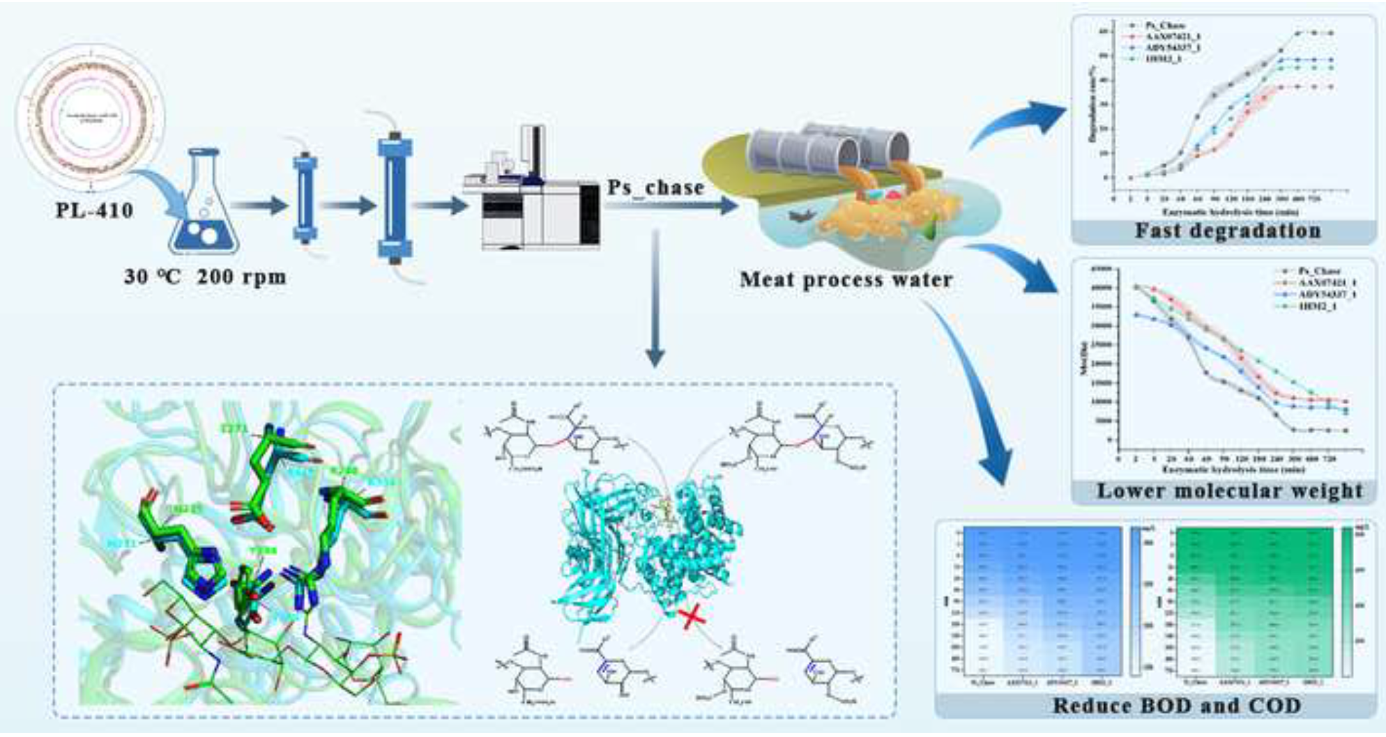 近日,中国农业科学院农产品加工研究所肉品科学与营养工程创新团队联合国内高校开发出一种新型高效裂解酶,对硫酸软骨素的定向酶解效率较商业化酶提高50%,兼具显著的减排与资源化价值。相关研究成果发表在《清洁生产杂志(Journal of Cleaner Production)》上。