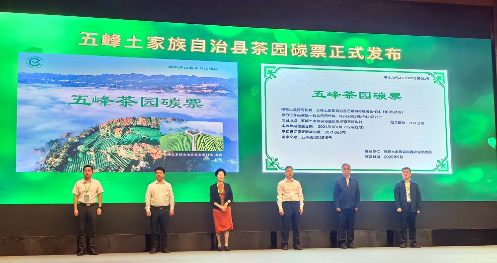 湖北省第一张茶园碳票的发布与质押,是五峰土家族自治县在农业上践行双碳战略、落实绿色发展理念的重要成果,标志着中国茶产业在探索“卖茶叶”到“卖生态”的生态价值体系转化道路上开启了新的征程,是探索茶叶生态价值实现机制上重要一步,对推动茶产业绿色低碳发展具有标志性的意义。
